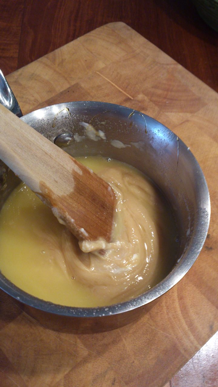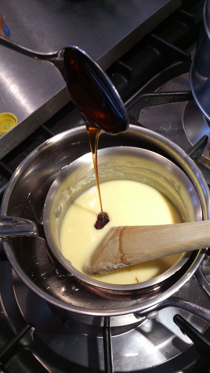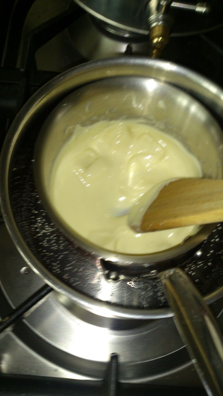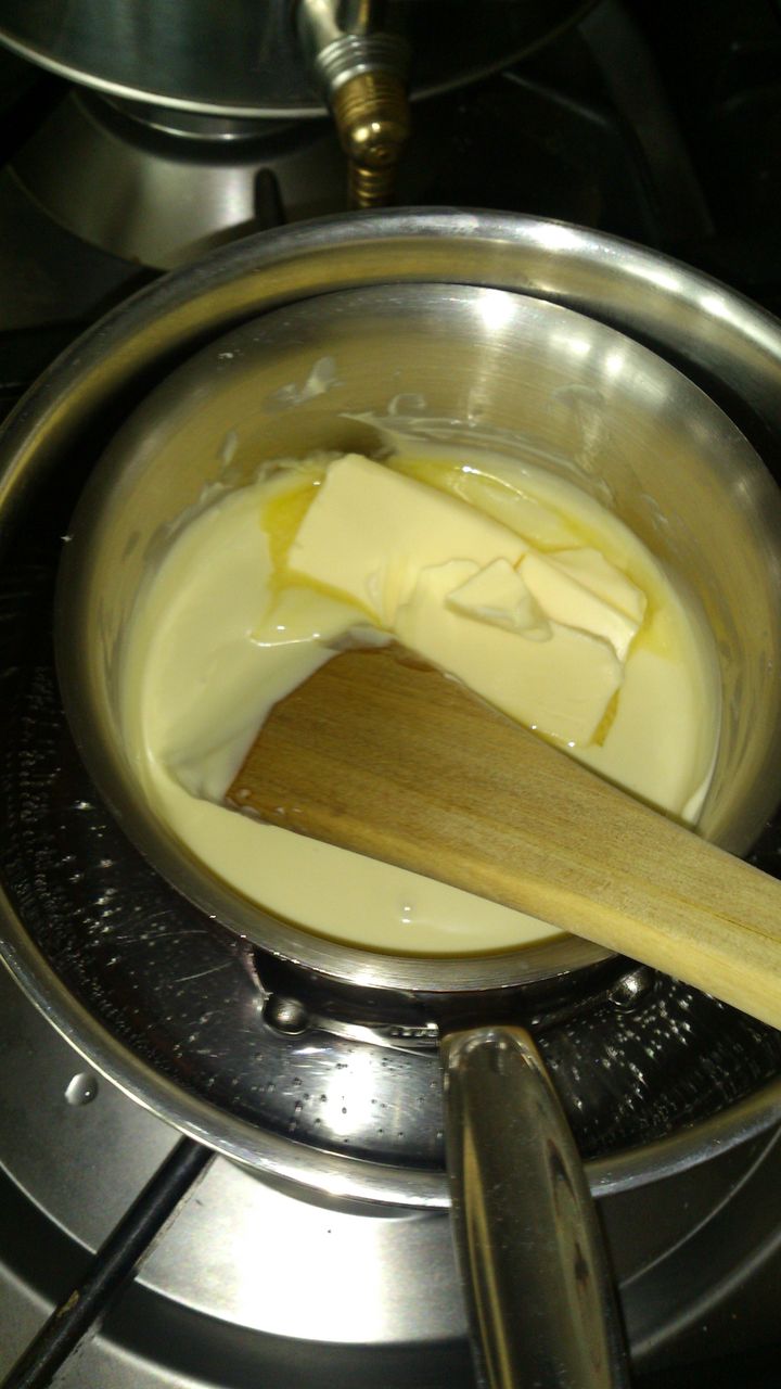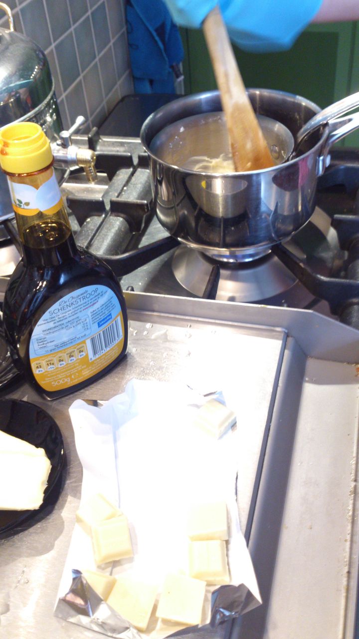 bij ons ging de chocola en stroop scheiden van de boter, IEUWL. dus we haalde het van het vuur af, en bleven roeren, toen werd het na een tijdje een geheel.